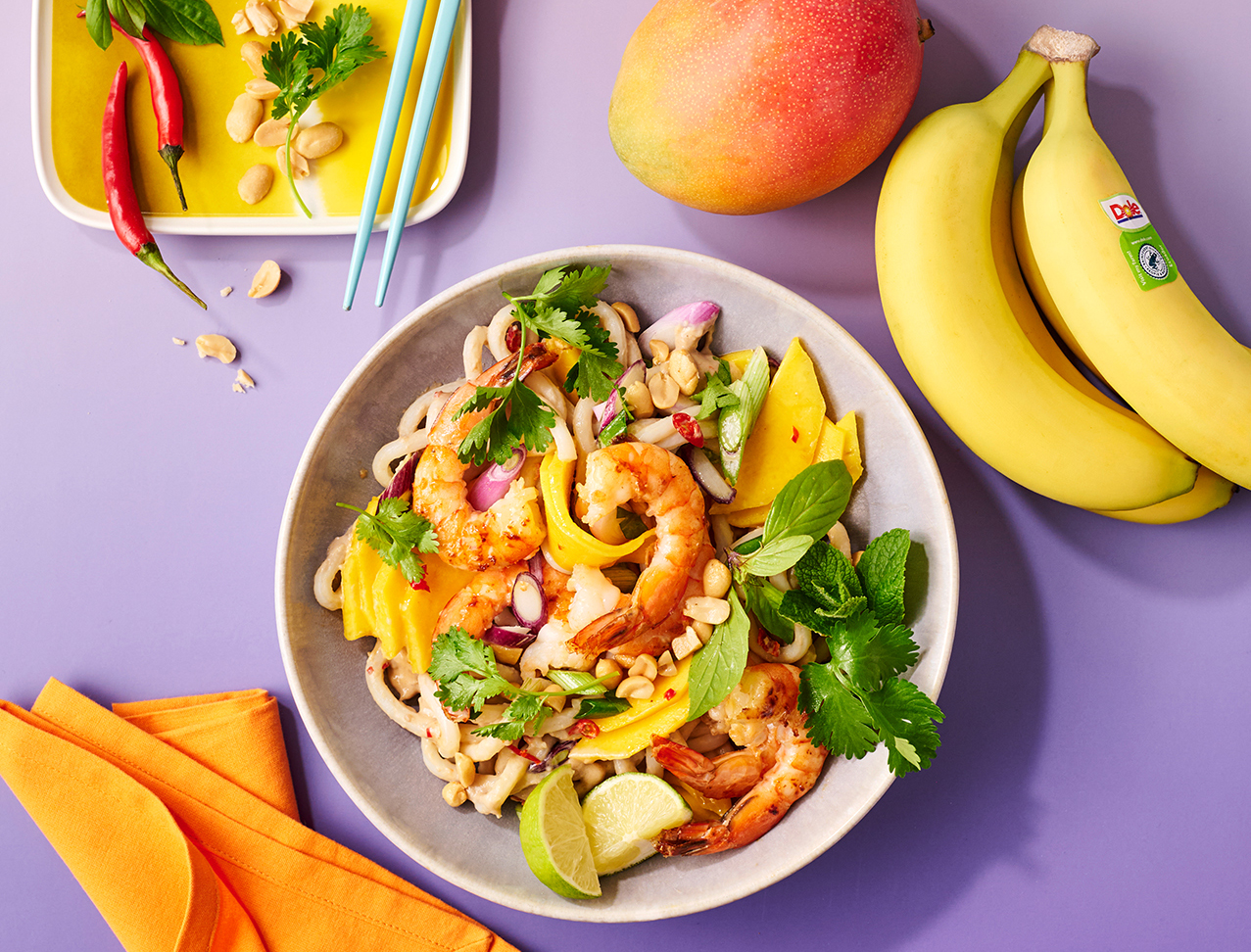 Mango-Nudelsalat in Bananen-Erdnuss-Dressing