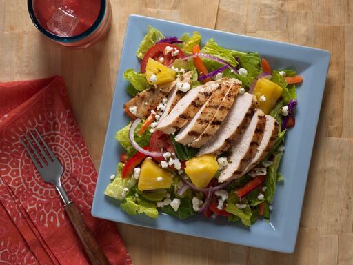 Begin aan de Amerikaanse westkust en reis verder westwaarts naar de Hawaïaanse eilanden. Daar vind je de smaken voor deze luxe salade voor twee personen. Een knapperige romainesla wordt bestrooid met tomaat, paprika, rode ui en heerlijk zoete ananas. De warme kruidendressing en romige geitenkaas brengen je echter terug naar de weelderige valleien en wijngaarden van Californië. Wie had kunnen denken dat een salade een goedkoper (en lekkerder) alternatief kon zijn voor een reisje over de Grote Oceaan?